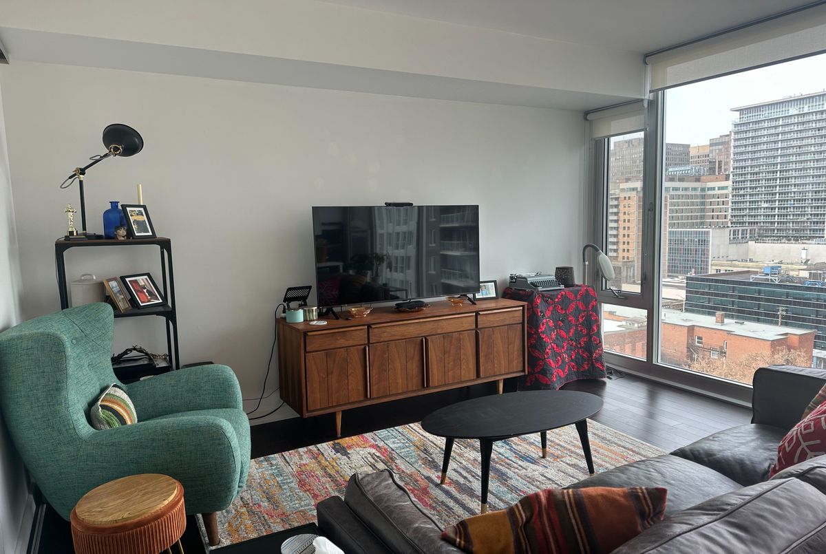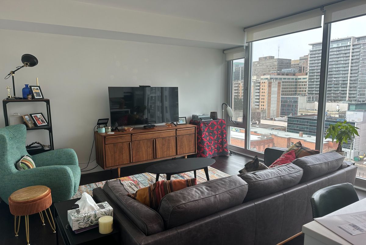 Urban chic one bedroom with den condo apartment in downtown Ottawa. Modern finishes feature quartz countertops, rich dark hardwood flooring, sliding glass bedroom doors, central island in kitchen, window blinds, and much more. Walk everywhere...theatres, cafes, shops & services all close at hand. Building amenities include outdoor lap pool, hot tub, BBQ patio, gym, sauna, theatre, party room/kitchen.