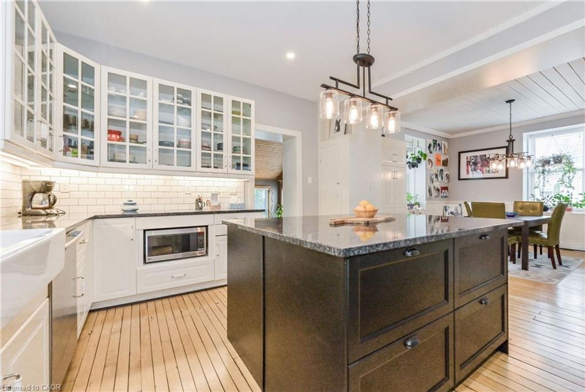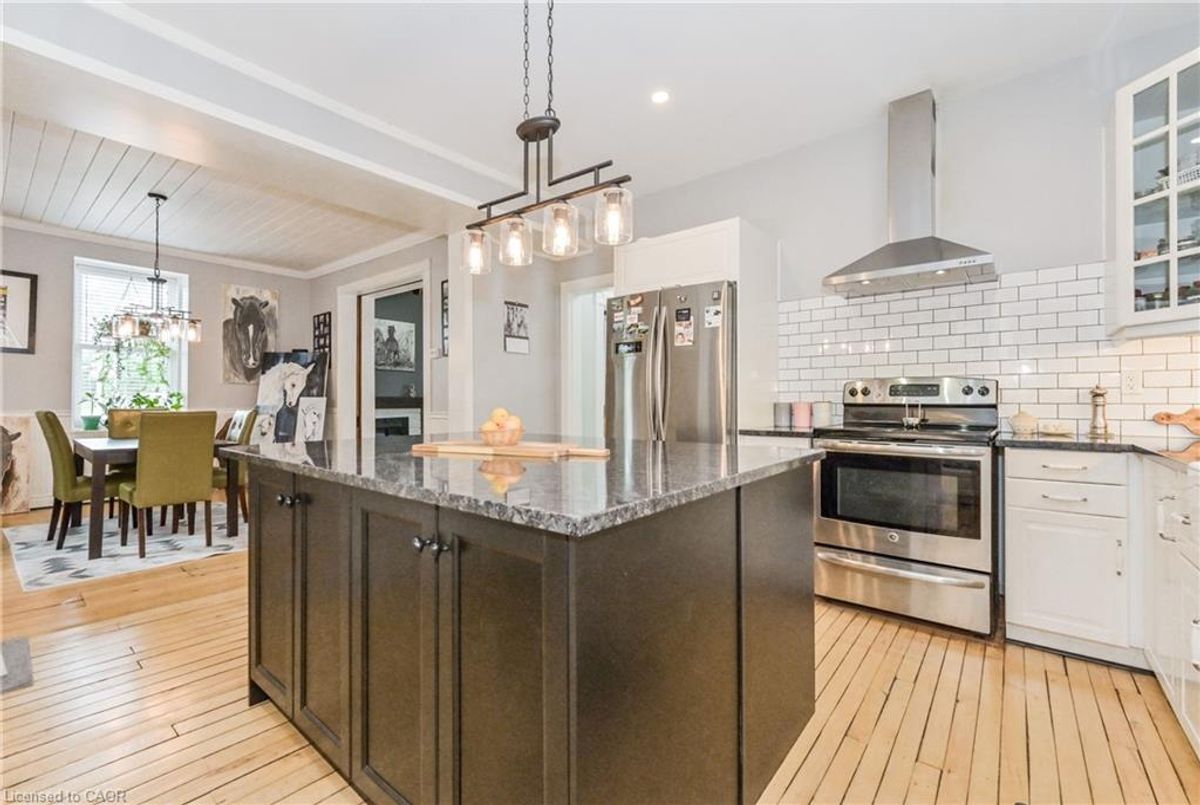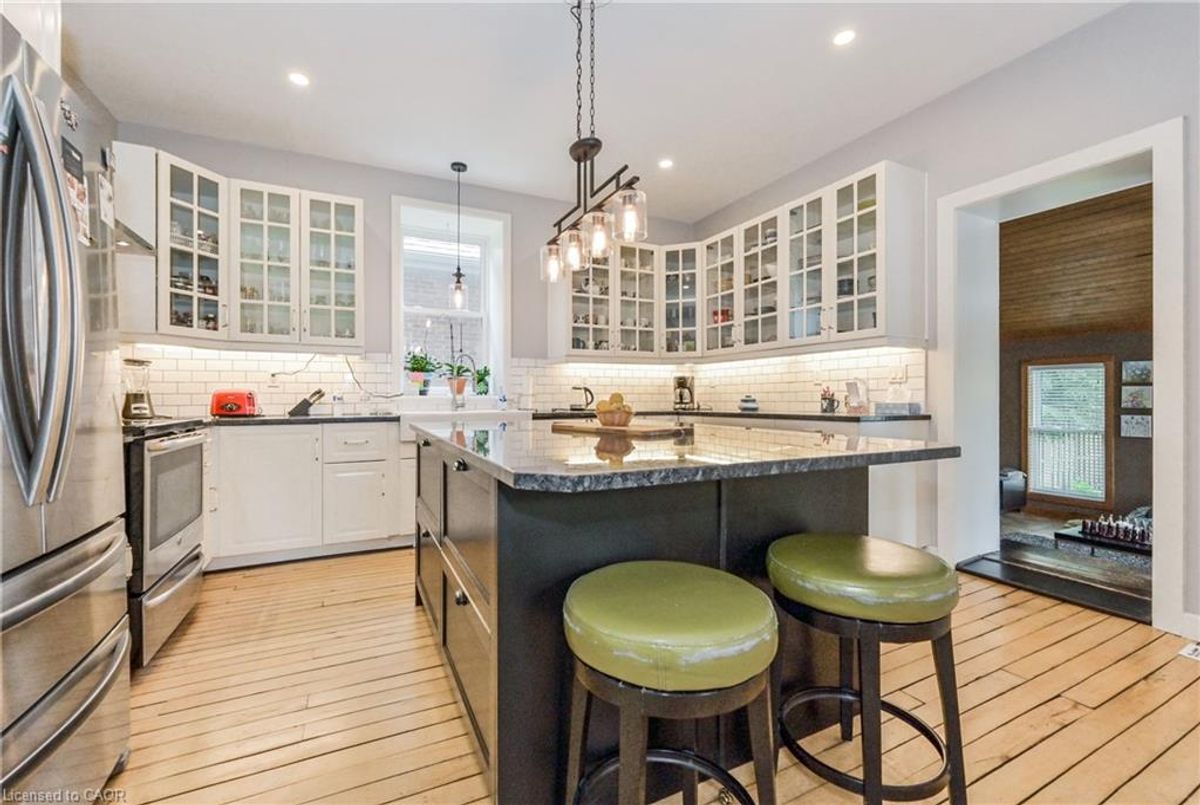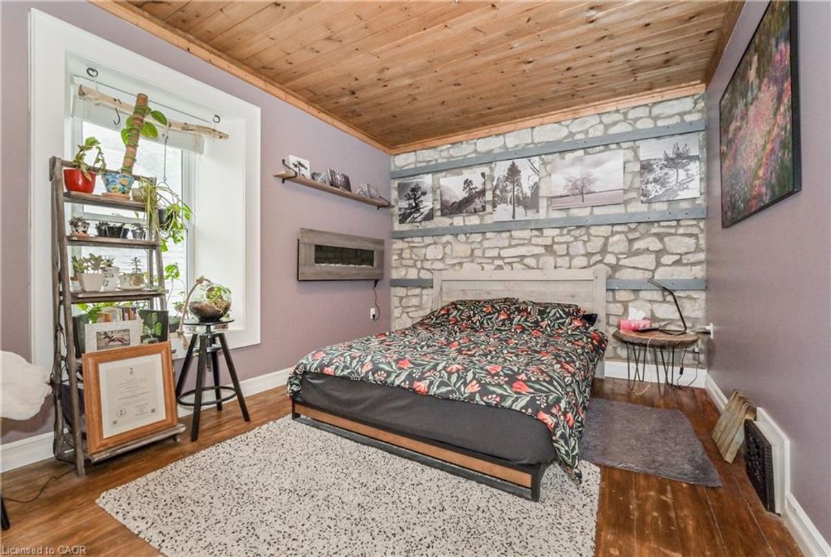 Gorgeous century stone home with heated in-ground pool! Features like Soaring ceilings, gleaming refinished hardwood floors throughout boast top quality craftsmanship not seen in the newer subdivisions. Absolutely stunning professionally designed gourmet style kitchen with granite tops throughout plus a massive full function island picture frames the glass front cabinets. Friends and family entertaining is fun with the formal dining room for that perfect evening. This amazing layout presents the open concept that includes the parlour that will fit that 12 ft Christmas tree. The primary bedroom features ensuite, walk in closet stone accent wall. Second bedroom boasts a fully exposed stone wall and sized perfect for the king size cozy bed plus a sun filled third bedroom/office just keeps adding more to this beautiful home. The newly renovated spa like second bath also features exposed stone walls and a cozy soaker tub. More exposed stone walls in the family room with gas fireplace over looking that beautiful, fully fenced private yard and natural gas heated pool. Finished basement for that family movie night after a day of fun at the pool. With commercial zoning the pool house could be used as a guest house year round or run your small business. Beautifully landscaped oasis finishes this picture perfect. ...