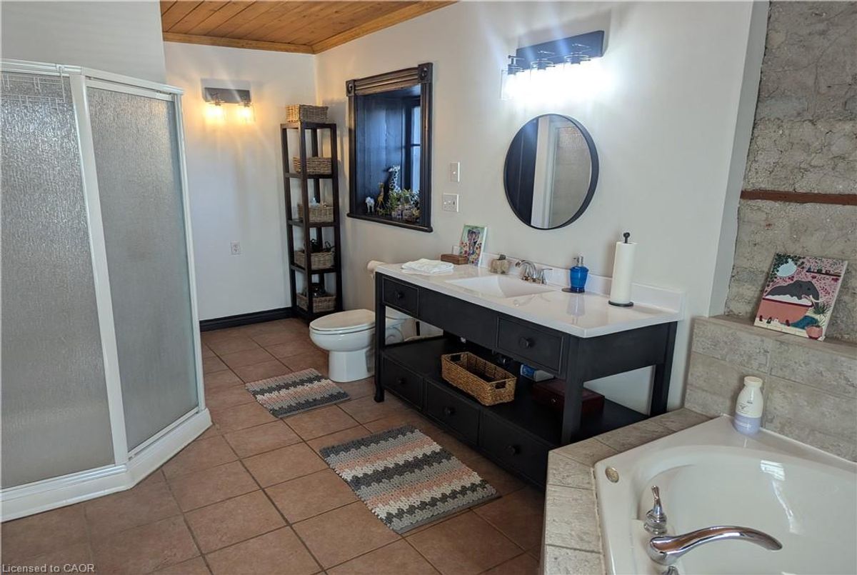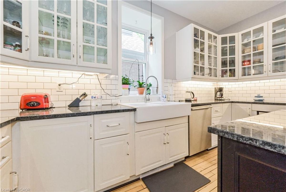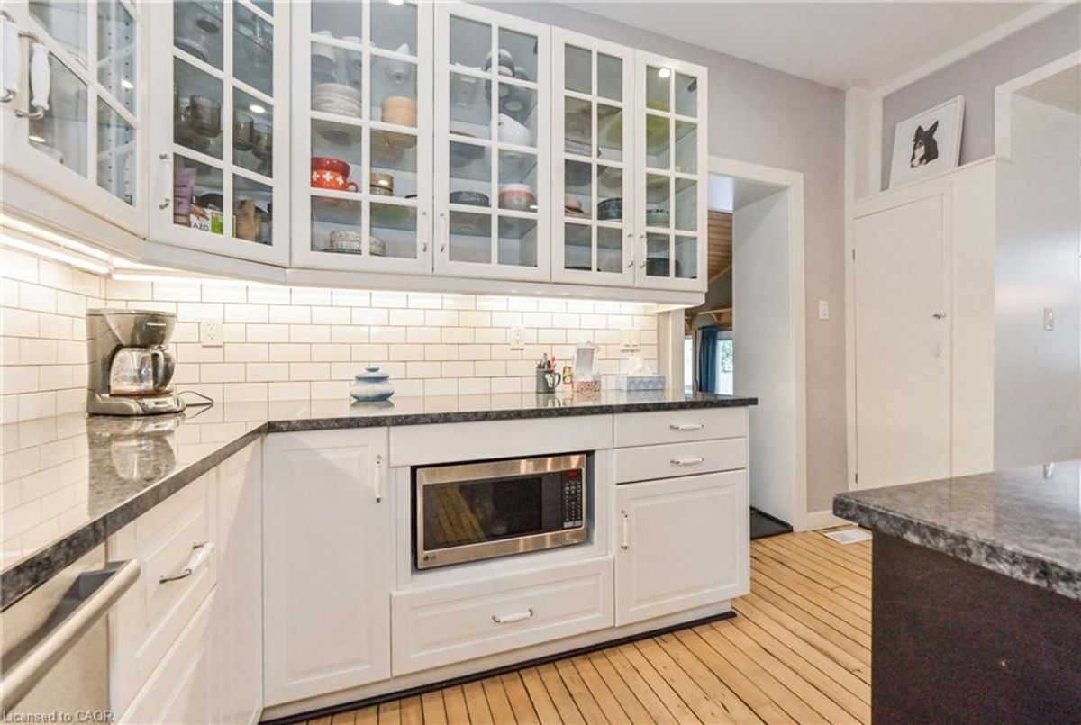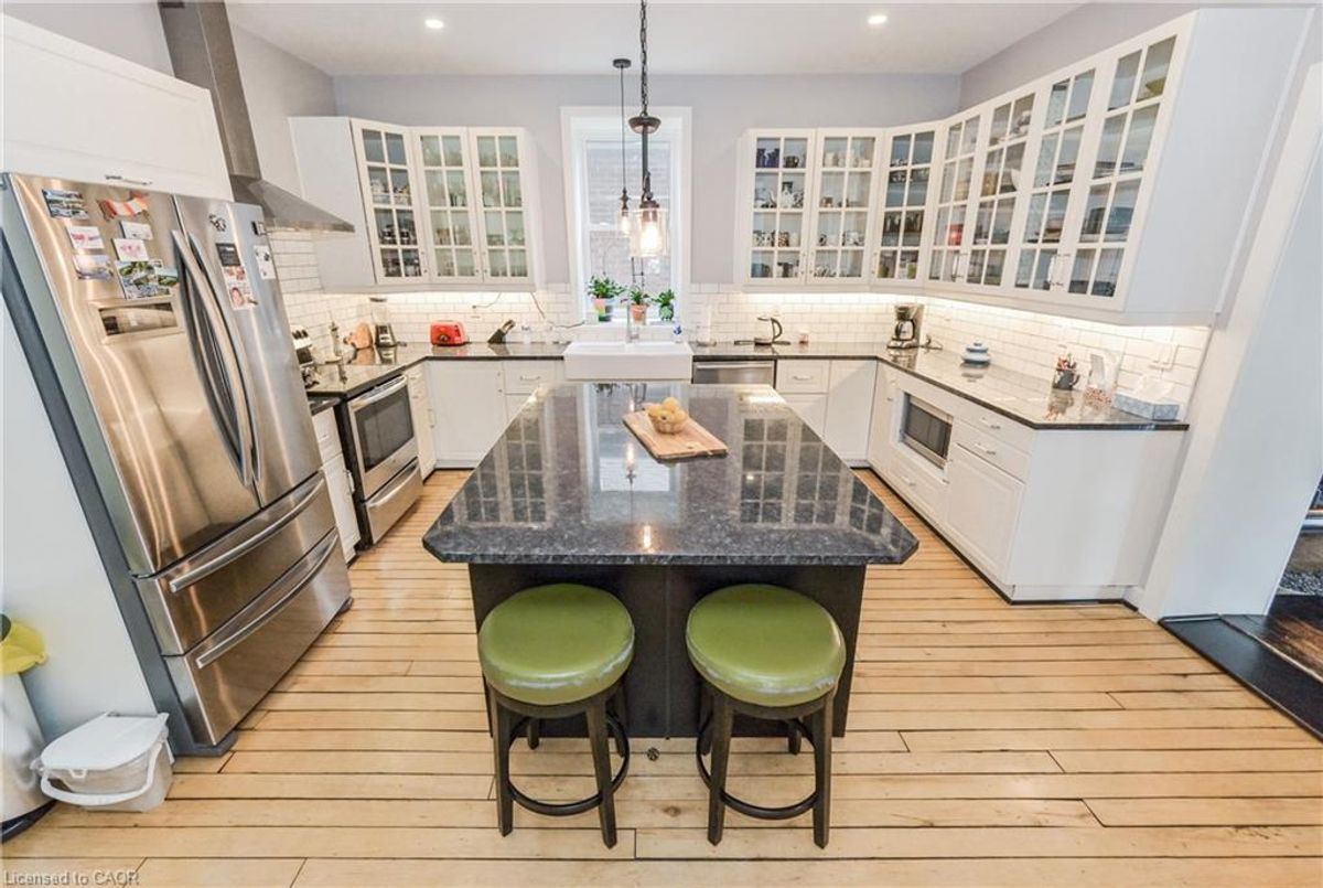 Gorgeous century stone home with heated in-ground pool! Features like Soaring ceilings, gleaming refinished hardwood floors throughout boast top quality craftsmanship not seen in the newer subdivisions. Absolutely stunning professionally designed gourmet style kitchen with granite tops throughout plus a massive full function island picture frames the glass front cabinets. Friends and family entertaining is fun with the formal dining room for that perfect evening. This amazing layout presents the open concept that includes the parlour that will fit that 12 ft Christmas tree. The primary bedroom features ensuite, walk in closet stone accent wall. Second bedroom boasts a fully exposed stone wall and sized perfect for the king size cozy bed plus a sun filled third bedroom/office just keeps adding more to this beautiful home. The newly renovated spa like second bath also features exposed stone walls and a cozy soaker tub. More exposed stone walls in the family room with gas fireplace over looking that beautiful, fully fenced private yard and natural gas heated pool. Finished basement for that family movie night after a day of fun at the pool. With commercial zoning the pool house could be used as a guest house year round or run your small business. Beautifully landscaped oasis finishes this picture perfect. ...