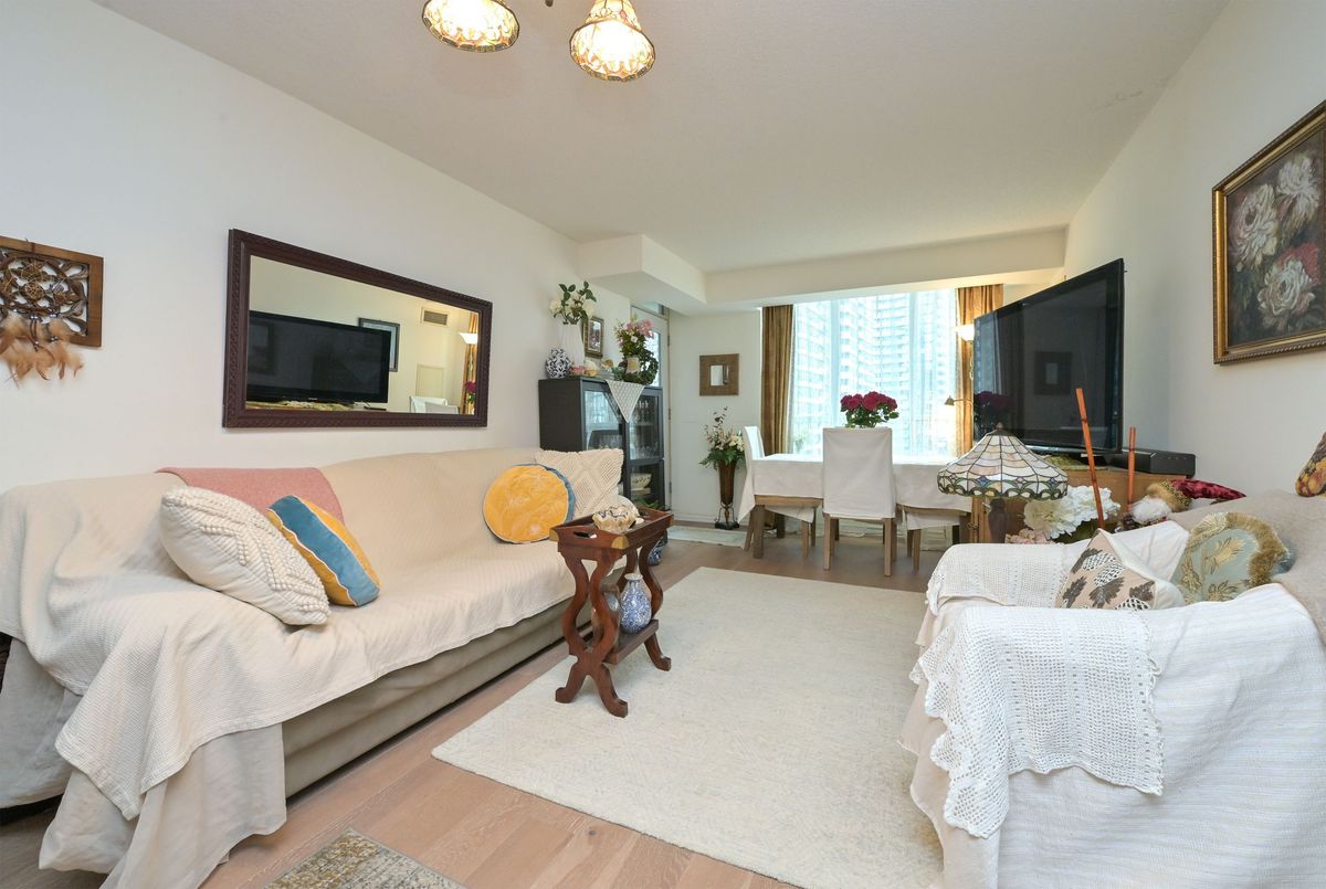 In the heart of Mississauga's City Centre, this bright 2-bedroom, 2-bathroom condo offers 881 sq ft just steps from Square One. Large windows fill the space with natural light, while the open layout and hardwood flooring create a comfortable setting for both everyday living and entertaining. The kitchen features granite countertops and stainless steel appliances and overlooks the living area. Two good-sized bedrooms include a primary bedroom with a walk-in closet and its own 4-piece ensuite, while the second bathroom is also a full 4-piece. Ensuite laundry adds everyday convenience. Residents enjoy a range of amenities including an indoor pool, gym, bowling alley, theatre room, library/study room, and outdoor BBQ area. From here, Square One Shopping Centre, restaurants, parks, Sheridan College, and the City Centre transit terminal are all within walking distance, with quick access to Highway 403. One underground parking space and one storage locker are included.