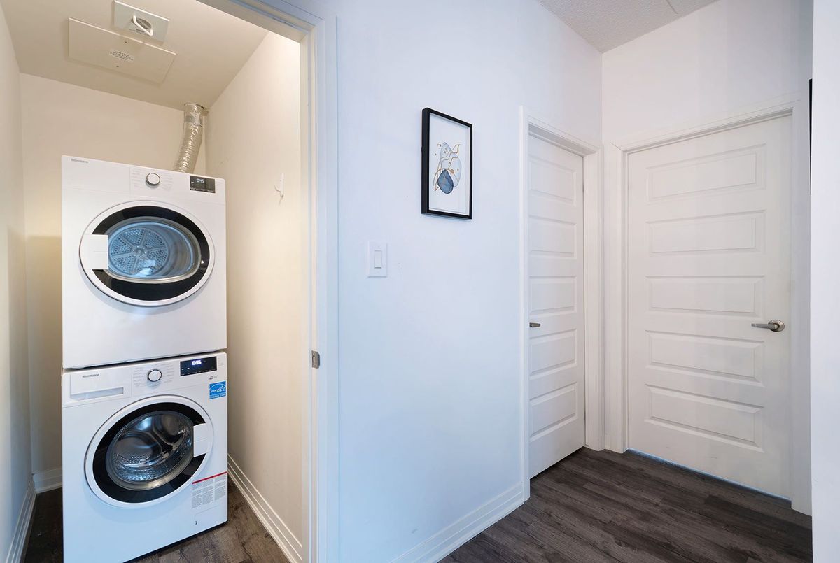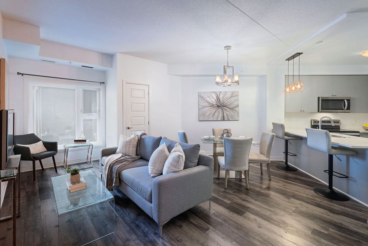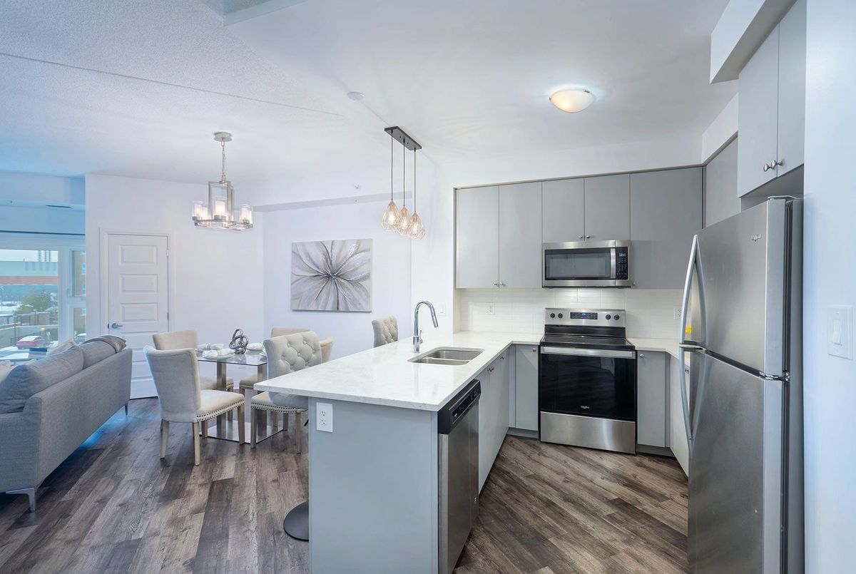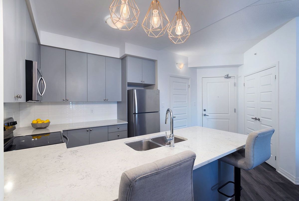Discover stylish condo living in this beautifully designed one-bedroom suite offering a fantastic open-concept layout and upscale finishes throughout. Featuring a seamless flow from the sleek, contemporary kitchen to the bright living area, this inviting home is ideal for both relaxing evenings and entertaining guests. The chef-inspired kitchen is a true highlight, complete with stainless steel appliances, elegant countertops and backsplash, and high-end light fixtures that add a refined, sophisticated touch. The spacious bedroom easily accommodates a full bedroom set and boasts a large walk-in closet, and a perfect walkout to the private balcony. While the well-appointed bathroom offers ample storage and stylish finishes. Flooded with natural light and enhanced by quality flooring and thoughtful design details, this condo delivers both functionality and flair. Enjoy the added convenience of one underground parking space and one storage locker. Ideally located close to schools, shopping, the hospital, and with easy highway access, this is a perfect opportunity for first-time buyers, downsizers, or savvy investors. Don't miss your chance to call this stunning unit home-book your private showing today! ...
