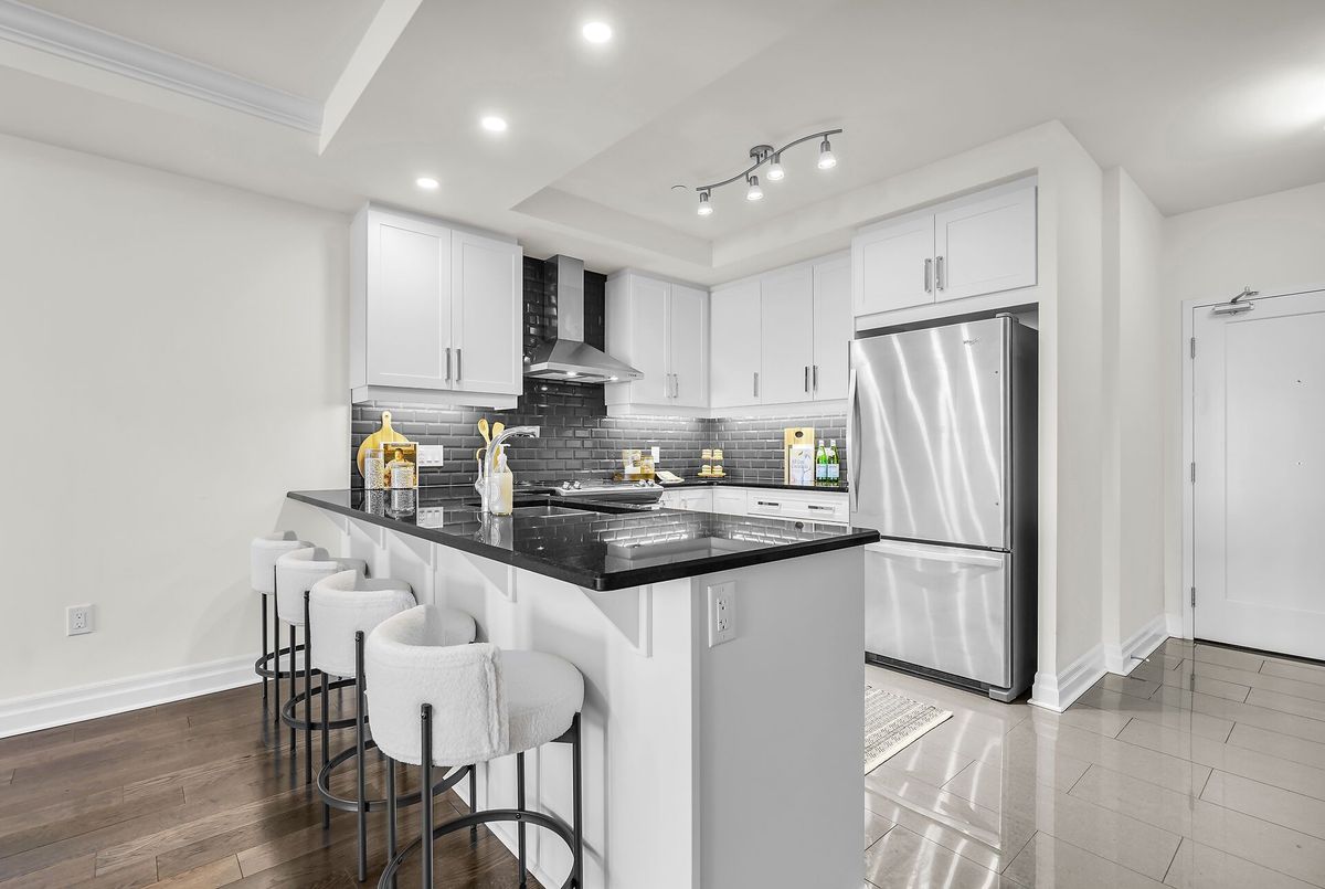 Resident doctors, ambitious young professionals and savvy investors - this is the kind of property that works as hard as you do! Enjoy modern living, low maintenance and a location designed for convenience and long-term value at the Azure Condominium. 2 Bedrooms + Private Den / 2 Bathrooms / In-suite Laundry / Dedicated Parking/EV Charger. This 22nd floor, NORTH FACING Plaza 2L model offers 1,315 sq ft (+140 sq ft balcony) open concept living with breathtaking panoramic views of cityscapes and evening sunsets. Step into the well equipped kitchen featuring stainless steel appliances, quartz countertops, tile backsplash, plenty of cabinetry and breakfast bar. Open-concept floor plan includes a dedicated dining area that flows seamlessly into the living space. With floor-to-ceiling windows & direct access to the balcony, it's an ideal setting for entertaining guests and enjoying quiet evenings. Spacious primary suite, complete with floor-to-ceiling windows, offers a luxurious ensuite bathroom with double sinks, spacious vanity and walk-in closet. Private Den/Office space is an exceptional addition to the floor plan whether you work from home or not ... private space is always a bonus! Second bedroom with closet and 4 pc bathroom is conveniently located off the main living areas. Oversized laundry/utility room provides plenty of space for laundry appliances and extra storage for your convenience -- no need for a remote storage locker. Exclusive access to rooftop amenities features Social Lounge, Library, Private Dining Room, Golf Simulator & Fitness Centre. Rooftop terrace offers stunning city views, complete with BBQs, gas fire pits & plenty of seating, Guest Suite available. Located minutes from London's finest restaurants, parks, hospitals, Canada Life, public transit & more. Condo fees include heating, cooling, water & hot water. This is a "must see" opportunity - book your showing today and be prepared to fall in love! (staging has been removed) ...